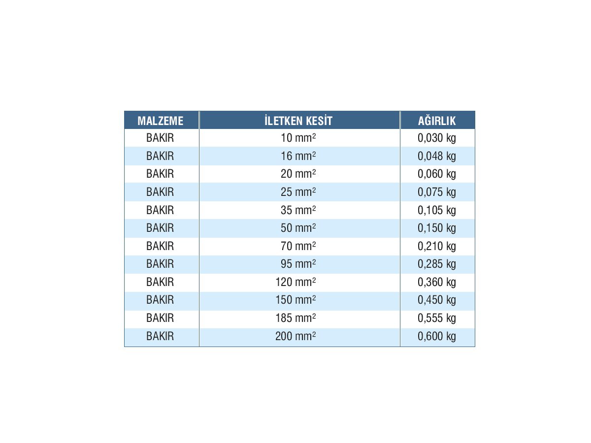 Kablolar Fiyat Listesi